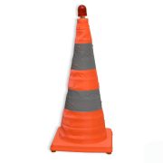 این کله قندی ترافیکی از قابلیت جمع شدن و ضد آب برخوردار است که این مزیت به لطف پارچهی برزنتی آن حاصل میشود. در ضمن پایهی این مخروطی پارچه ای مربعی شکل می باشد که طول هر ضلع آن 30 سانتیمتر است که موجب استقرار مخروطی روی سطح زمین می شود . این مخروطی از انواع تجهیزات ترافیکی راه ها و جاده ها می باشد.